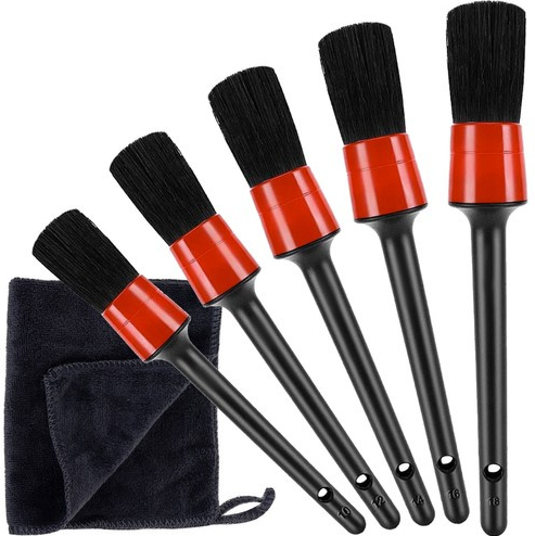 У наборі 5 кистей різного діаметра + серветка із мікрофібри. Це рішення дозволяє дістатися будь-якого місця в автомобілі за допомогою набору. Діаметр пензлів: 2см, 2,5см, 3см, 3,5см та 4см.